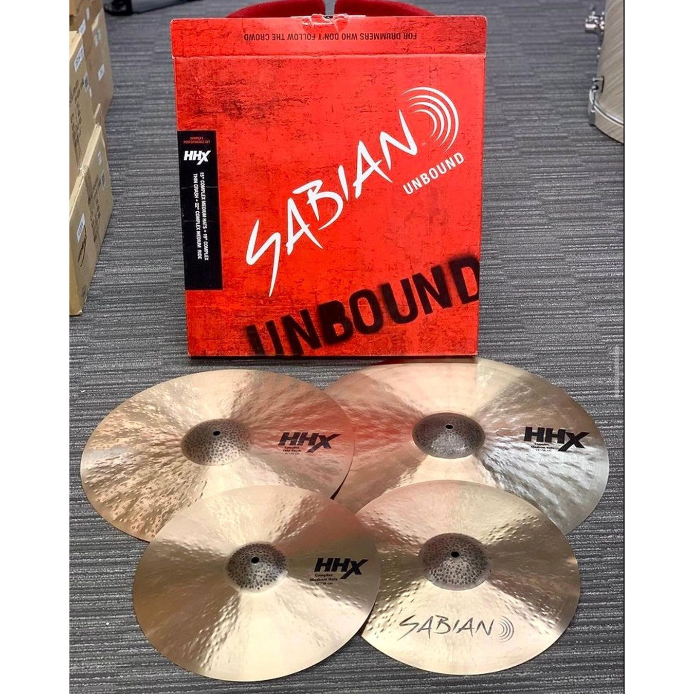 Using trickle down technology gleaned from years of developing some of the world’s top selling cymbals lines like Evolution, Legacy, and even Artisan, SABIAN introduces HHX Complex, a new line of exquisitely dark cymbals. Featuring a combination of HH and HHX hammering, raw hammered bells, and proprietary technology, HHX Complex are some of the richest, sweetest cymbals SABIAN has ever produced. The versatility to easily cross musical styles has always been a hallmark of the HHX line, and the HHX Complex Promotional Set – with 15” Complex Medium Hats, 19” Complex Thin Crash and a 22” Complex Medium Ride – is no exception. Attributes B20