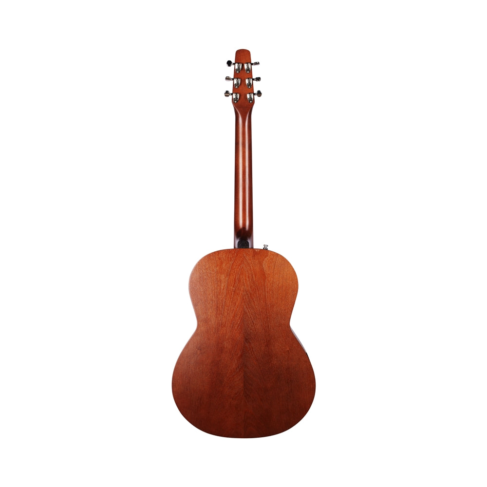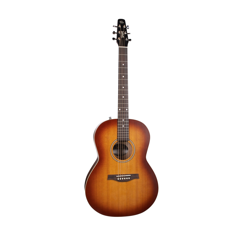 By popular demand, the Seagull Entourage Rustic Burst is back! The Canadian-made Entourage Folk Rustic Burst features our classic breath-through rustic finish, highlighting the unique wood grain of each guitar and accented by an elegant cream binding. The Folk body size is extremely comfortable to hold and a pleasure to play. With its slightly smaller body size compared to a classic dreadnought, the Folk exudes a complex harmonic richness thanks to the tight bottom end, rich velvety mids and bell-like highs.