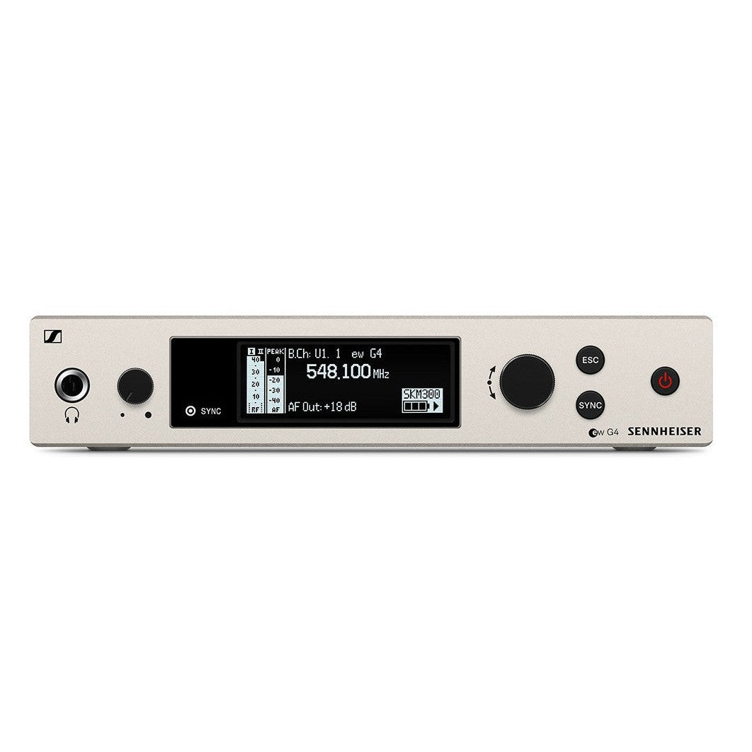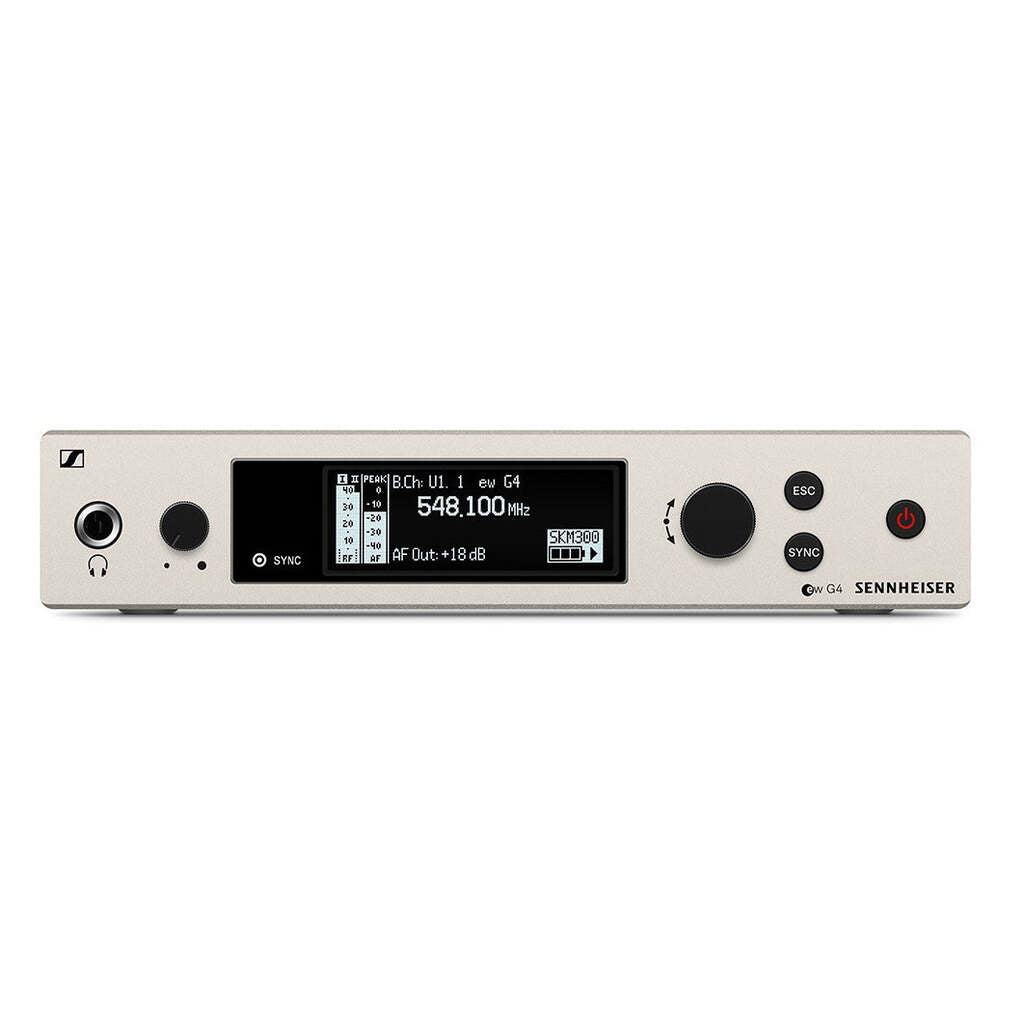 Overview The pro‘s choice. Renowned sound engineers rely on ew 500 G4‘s flexibility, especially when handling multi channel settings on the world‘s music stages. Up to 88 MHz bandwidth, up to 32 channels. Ethernet connection for Wireless Systems Manager (WSM) control software included for advanced frequency coordination in multi channel setups. The pro‘s choice for perfectly balanced but upfront guitar and bass. Powerful bodypack transmitter and Ci1 instrument cable for unforgettable performances. Features True diversity half-rack receiver in a full-metal housing with intuitive OLED display for full control Easy and flexible wireless synchronization between transmitter and receiver via infrared Up to 32 compatible channels Up to 88 MHz bandwidth with 3520 selectable frequencies, fully tunable in a stable UHF range Ethernet connection for Wireless Systems Manager (WSM) control software for advanced frequency coordination in multi-channel setups High RF output power (up to 50 mW, adjustable in three steps 10/30/50) depending on country regulations What's in the box? EM 300-500 G4 true diversity receiver SK 500 G4 bodypack transmitter Ci 1 instrument cable 2 AA batteries GA 3 rackmount set power supply 2 rod antennas quick guide safety guide manufacturer declaration sheet Technical Data EM 300-500 G4 Frequency range AS: 520 - 558 MHz GBw: 606 - 678 MHz Gw: 558 - 626 MHz Bw: 626 - 698 MHz Cw: 718 - 790 MHz Dw: 790 - 865 MHz Aw+: 470 - 558 MHz Gw1: 558 - 608 MHz Dimensions Approx. 202 x 212 x 43 mm Compander Sennheiser HDX
