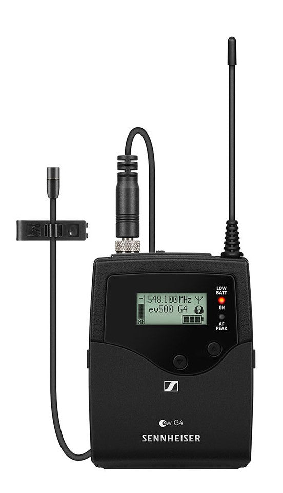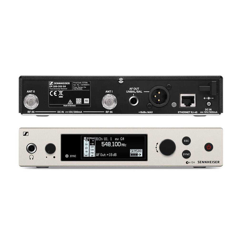 The pro‘s choice. Renowned sound engineers rely on ew 500 G4‘s flexibility, especially when handling multi channel settings on the world‘s music stages. Up to 88 MHz bandwidth, up to 32 channels. Ethernet connection for Wireless Systems Manager (WSM) control software included for advanced frequency coordination in multi channel setups. The pro‘s choice for impressive presentations. The professional MKE 2 Gold omni-directional condenser microphone resists the test of time on any big live stage and ensures a high speech intelligibility on any stage, indoors and outdoors. Features True diversity half-rack receiver in a full-metal housing with intuitive OLED display for full control Easy and flexible wireless synchronization between transmitter and receiver via infrared Up to 32 compatible channels Up to 88 MHz bandwidth with 3520 selectable frequencies, fully tunable in a stable UHF range Ethernet connection for Wireless Systems Manager (WSM) control software for advanced frequency coordination in multi-channel setups High RF output power (up to 50 mW, adjustable in three steps 10/30/50) depending on country regulations