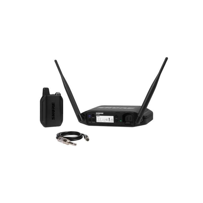- The new GLX-D+ Dual Band Wireless Bodypack System features the WA302 guitar cable and the GLXD4+ tabletop receiver. The perfect combination of the automatic frequency management with the new Dual Band Technology provides reliable and consistent performance, while Shure proprietary lithium-ion rechargeable batteries provide up to 12 hours of use. Go wireless without complication.