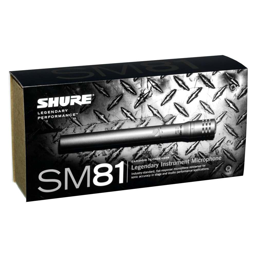 The Shure SM81 is a high-quality, unidirectional condenser microphone designed for studio recording, broadcasting, and sound reinforcement. Its wide frequency response, low noise characteristics, and low RF susceptibility have made it a standard for applications involving acoustic instruments, especially guitar, piano, and cymbals.