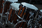 All drums, as well as the inside and outside of the bass drum hoops, are finished with 1 ply of Ebony Replica Outer Veneer that is finished with clear high gloss lacquer