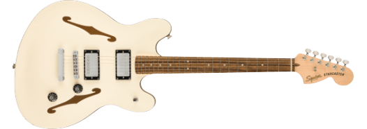 The Starcaster® broke the mold of semi-hollow guitar design with its offset body shape when it was introduced in the '70s, offering versatile sound and out-of-this-world styling for the most adventurous players. The Affinity Series™ Starcaster Deluxe features several player-friendly refinements such as a lightweight semi-hollow body, a slim and comfortable “C”-shaped neck with familiar Stratocaster® headstock, an adjustable bridge with stop tailpiece for solid tuning stability and sealed die-cast tuning machines with split shafts for smooth, accurate tuning and easy restringing. Loaded with a pair of Squier humbucking pickups with 3-way switching for genre-defying sonic variety, this model is ready to accompany any player at any stage.