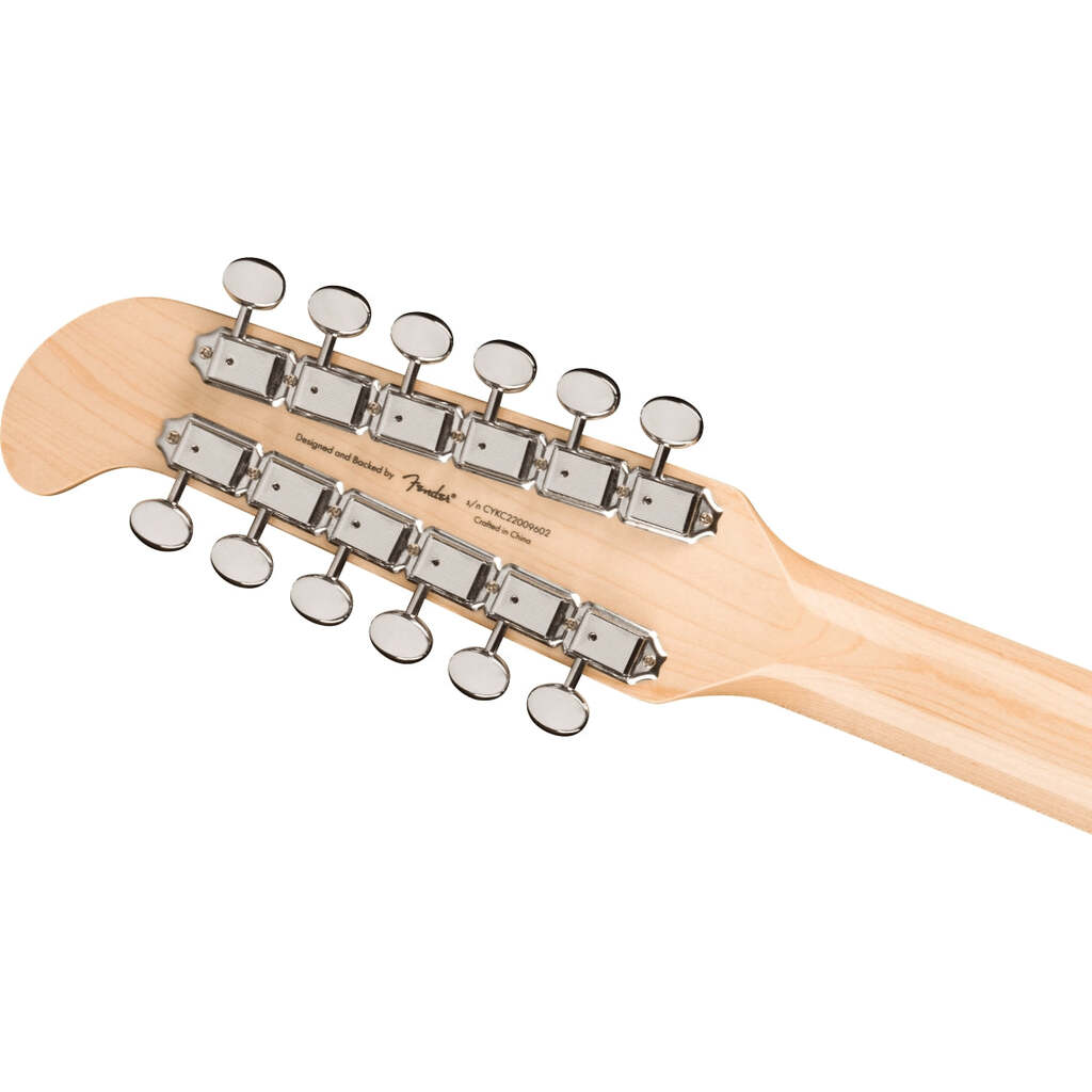 With its iconic offset body shape and rich harmonic character, the Squier® Jazzmaster® XII encourages the most adventurous players to chart a new course of guitar exploration. Featuring dual Fender-Designed alnico single-coil Jazzmaster pickups with 3-way switching and a vintage-inspired “hockey stick” headstock design, this 12-string model doubles down on chime-y tones and timeless style. Other player-friendly details include a graphite-reinforced “C”-shape neck for optimal stability and easy playability, a hybrid string-through-body/top-load bridge for reliable intonation, vintage-style tuning machines for smooth tuning action, and a gloss neck finish for a slick yet confident feel.