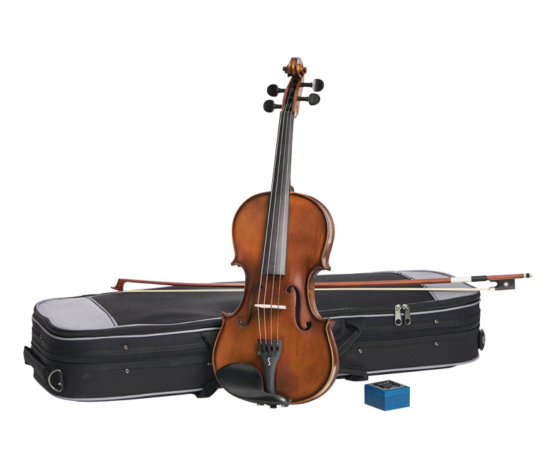 The Stentor Graduate is an excellent student violin outfit for the progressing student or adult beginner with a strong good quality brazilwood bow and a stylish oblong case. It is a good option for students progressing from their first instrument or just starting. The violin is carved from solid tonewoods and features an attractive shaded satin varnish. It has ebony fingerboard and pegs and is fitted with synthetic gut strings for improved sound. Completing the Stentor Graduate outfit is a lightweight oblong case with integral cover in black and grey two-tone design with safety reflectors, a fitted interior with accessory pocket and two bow holders, hygrometer, carrying straps and case blanket, as well as a reliable wood bow with ebony frog.