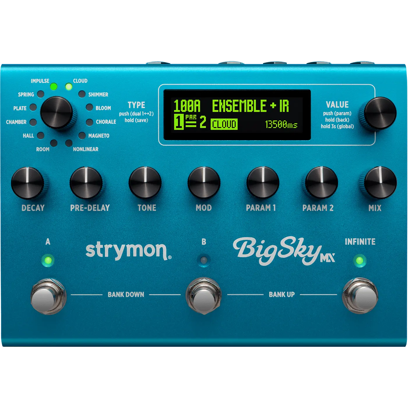 BigSky MX is Strymon’s new flagship reverb pedal, expanding on the legacy and sound of the original BigSky. With 12 new reverb machines, other new features include the ability to run two reverbs at once, 10 second stereo impulse response capability and full IR editing, new OLED display, upgraded audio IO, USB-C for computer connection and multiple foot switch modes.