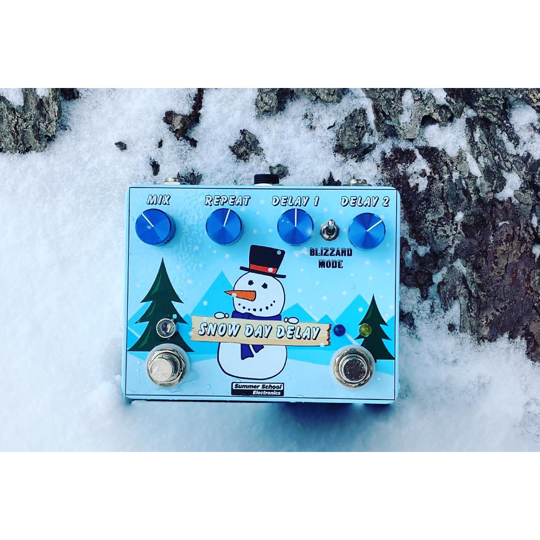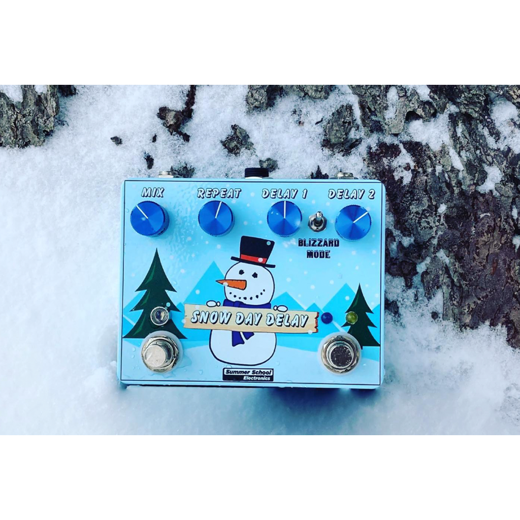 The Snow Day Delay is the first time-based effect from Summer School Electronics. Featuring 2 independent PT2399 chips, the Snow Day Delay offers the user 2 independent delay settings that can be set, and rotated between with the onboard footswitch, or run at the same time. With 4 unique delay options between the 2 settings, the Snow Day Delay can be your classic clean digital delay sound, add some unique analog saturation to echoes, or be a percussive wave of both echoes at once.