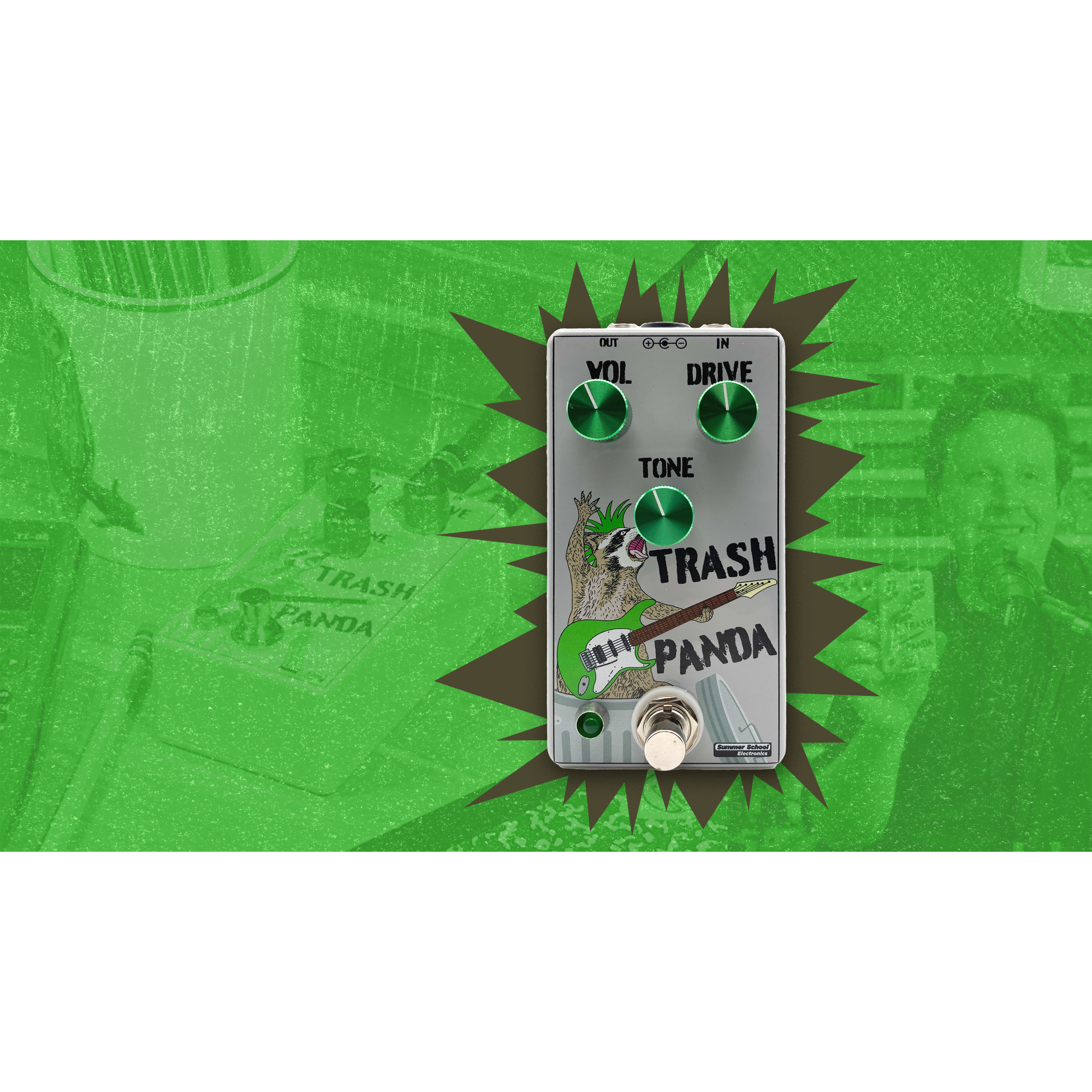 In a time of supply chain delays and part shortages, the Trash Panda by Summer School Electronics is a survivor. Designed from spare available parts, and assembled in a unique way that allows it to be an overdrive to play everything from country to hard-rock, the Trash Panda is a high-gain soft-clipping overdrive/distortion with a wide range tone control that can roll off piercing high end, or remove the mud to make your guitar shine. The Trash Panda runs on a standard 9-volt, neg. center power supply, and has a lifetime warranty. Hand built in Syracuse, NY by working musicians with attention to detail.