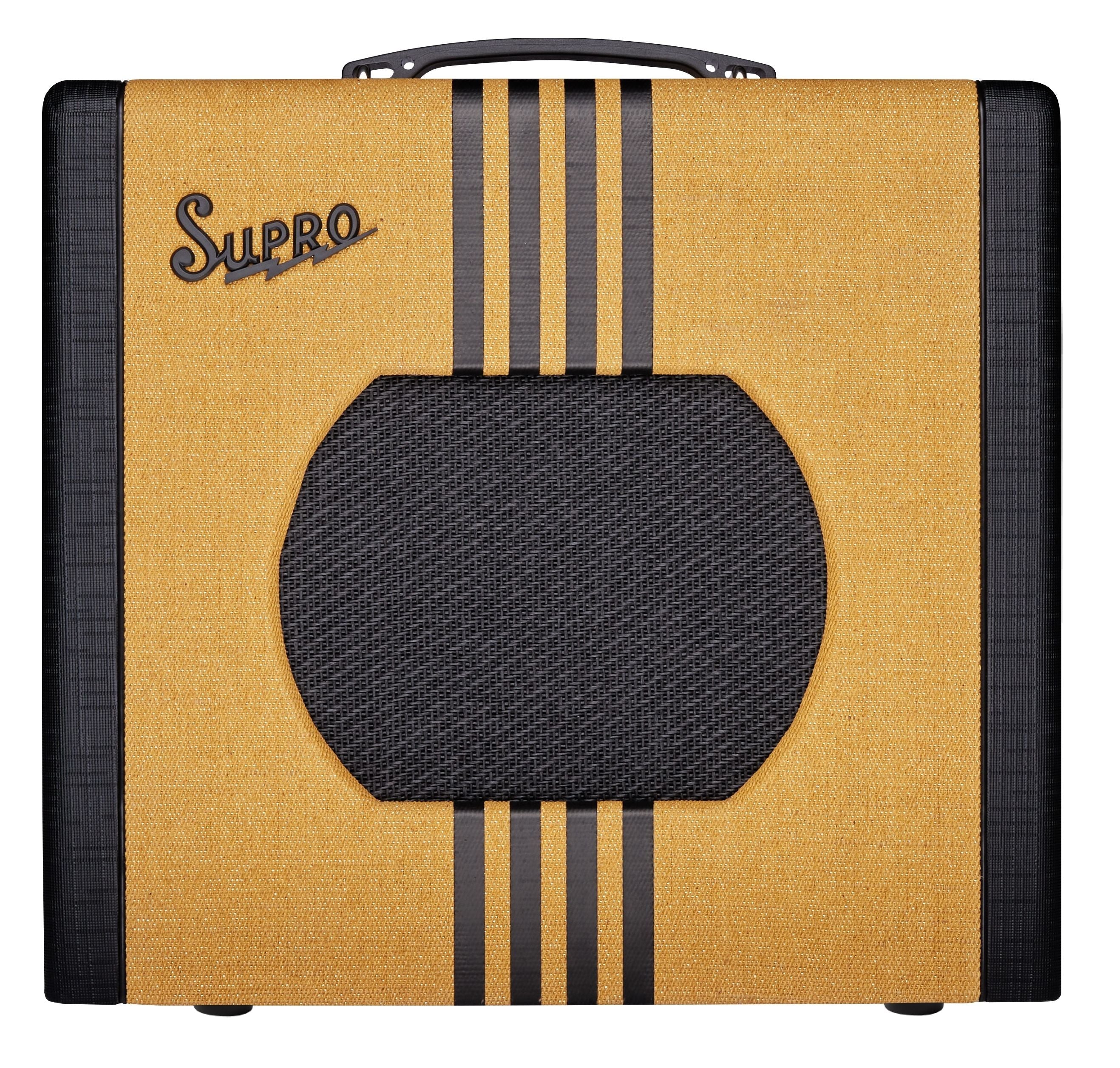 Hearkening back to the original Supro combo amplifiers, the Delta King 10 features a custom, poplar cabinet design, and two unforgettable colorways: custom tweed with black stripes, and black with cream stripes.
