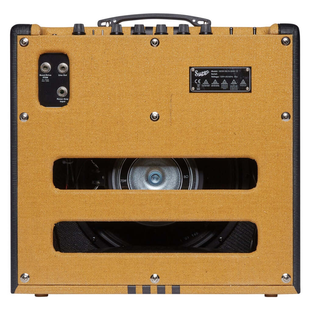 The Delta King 12 combo captures the vintage Supro amp tone that helped sculpt the sound of early electric Rock & Roll and the British Invasion of the 1960s. Its single-ended Class A tube power amp provides the same raw tonal characteristics and remarkable touch sensitivity features of its mid-century counterparts, all while delivering a full 15 watts of 6L6 tube power through our custom 12-inch DK12 speaker. Features include front-end gain via a 12AX7 tube preamp, a FET-driven boost function, Pigtronix FAT high-gain mode, 3-band EQ, master volume, and custom-made genuine analog spring reverb.