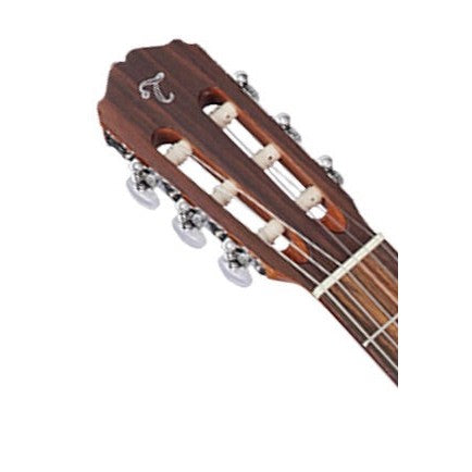 The GC1 is an attractive classical acoustic guitar that's built to deliver beautiful nylon-string sound. An excellent choice for any player seeking an affordable classical guitar that performs well above its price tag, the GC1 features a fan-braced select spruce top and mahogany back and sides for a full and balanced sound. The comfortable mahogany neck and laurel fingerboard provide great feel and playability. Other great features include a dovetail neck joint, beautiful inlaid mosaic rosette, synthetic bone nut and bridge saddle, chrome tuners with white pearl buttons and an elegant gloss finish.