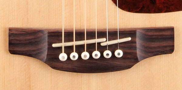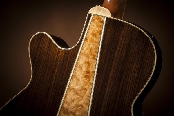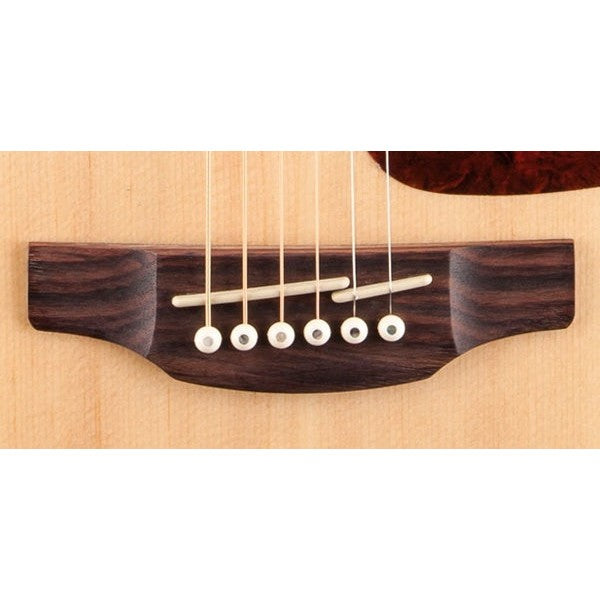 Other premium features include maple body, neck and headstock binding; dark wood rosette and body purfling; synthetic bone nut and split bridge saddle; laurel headcap; abalone dot inlays; gold die-cast tuners with black buttons; and a beautiful gloss finish. Available in Natural.