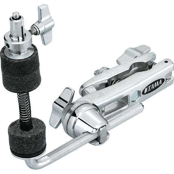 This closed hi-hat attachment utilizes a specially designed screw clutch, allowing for quick, easy, and precise adjustments. The space between the hi-hat cymbals can be adjusted by rotating the screw clutch clockwise or counterclockwise. The top cymbal is supported by a center spring, allowing for the hi-hat cymbals to be placed in the open position. This clamp can be attached to an existing stand pipe that is 15.9 mm to 28.9 mm in diameter.