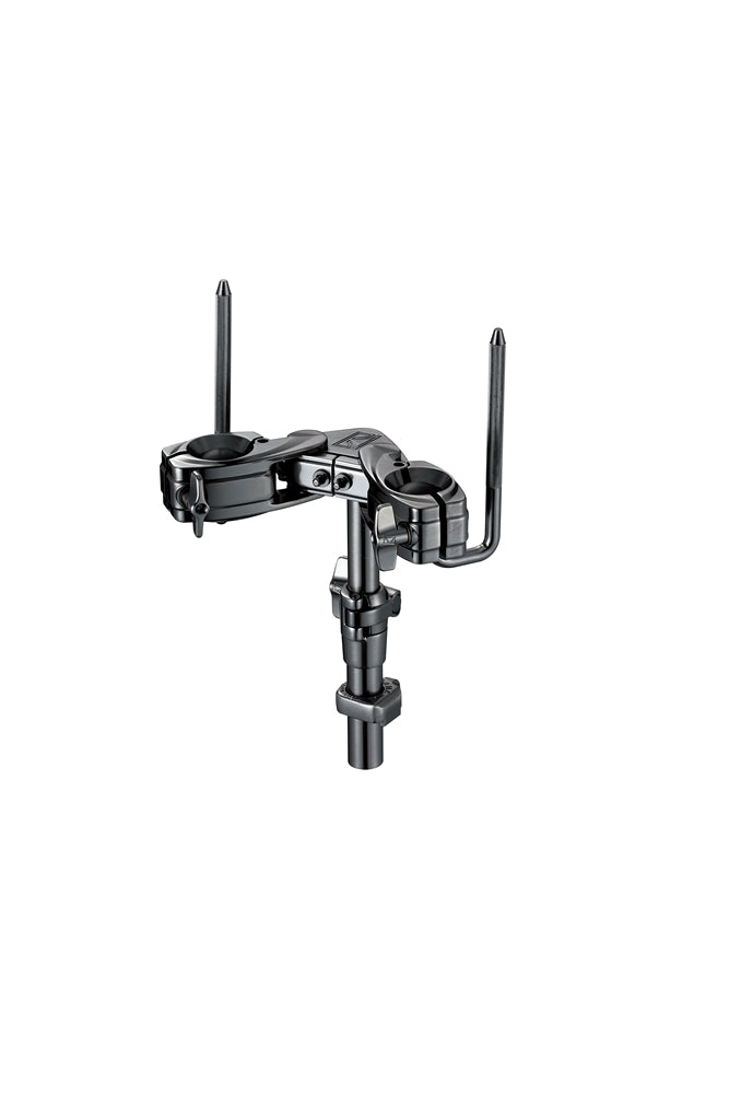 The 2 holding parts move independently to the left and right, allowing for a wide range of tom-tom position adjustment.