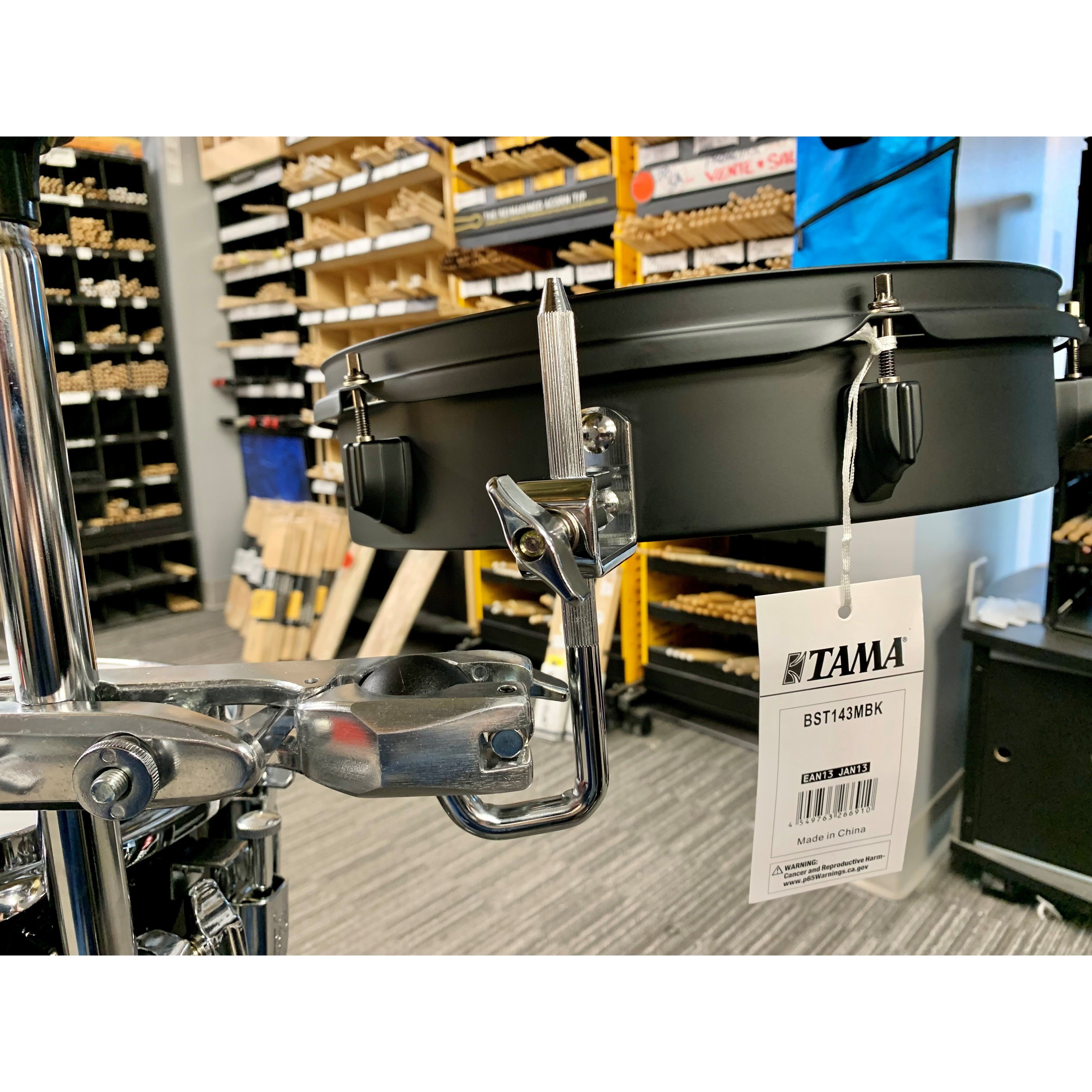 The Metalworks "Effect" snare drums add unique snare sounds to your drum kit. By dampening the snare with a ring mute, this 14"x3" snare has fat low-end sound with a short sustain. The newly developed Mod-Tone system allows you to precisely adjust the snare wire tension smoothly. The snare can be easily placed anywhere on the drum kit with the included MC69 single tom attachment.