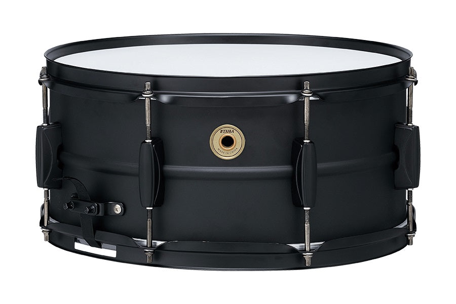 This steel snare drum offers a bright tone with a tight crispness in high-tuning and a smooth resonance in low-tuning. A 1.2mm matte black steel shell is processed to have a ridge on the center of the shell as reinforcement. The color of the shell hardware is matched to the matte black shell.