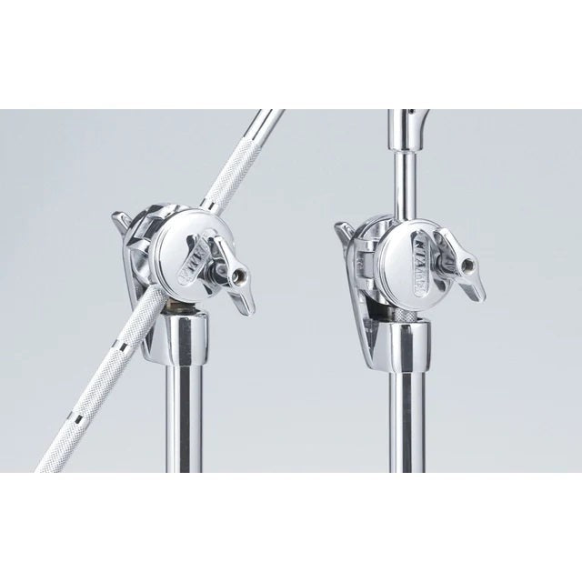 The Boom Cymbal Stand combines sturdy reliability with smooth fastening and precise positioning. Lock your cymbals exactly where you need them with the toothless Quick-Set tilter. Then swap cymbals with the flick of finger, thanks to the Quick-Set cymbal mate. Glide-Tite grip joints maximize resonance while eliminating annoying rattle. A threaded steel insert nut in the base and nylon washers in the double-braced legs provide additional support and reduce the risk of stripping. Don't let limited stage space cramp your style! Convert the boom stand to a straight stand by storing the boom arm neatly in the upper tube.