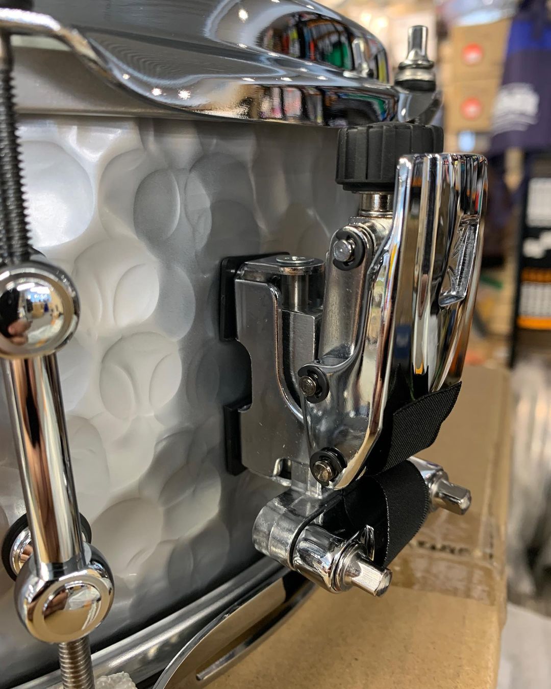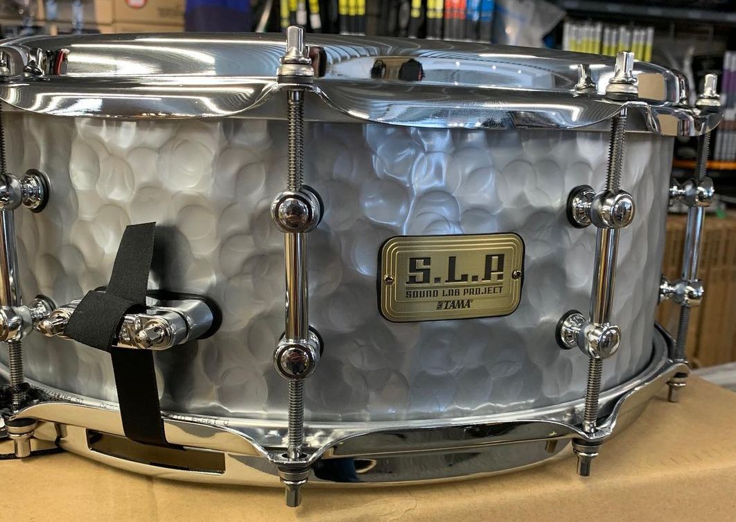 This 14" x 5.5" snare is crafted of 1.2mm hammered steel shell. The hammered process adds tonal complexity, depth, and dryness to the sounds typically associated with TAMA's steel shell, which are bright and penetrating. The more complex tones are generated from the way sound waves asymmetrically reflect off the hammered shell texture.