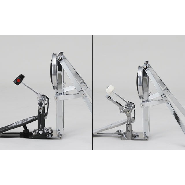 The Flush Frame provides enhanced bass drum pedal stability. Frame angle adjustment allows the bass drum pedal to sit fully flush on the floor for super solid connection between pedal and frame.