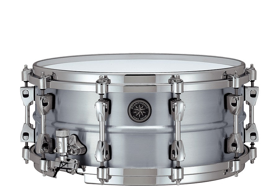 Featuring a 1.2mm thick seamless Aluminum shell, this drum creates a crisp, open sound with bright, complex overtones. Its aluminum shell maximizes the most positive attributes of STARPHONIC features, such as the Freedom Lug, the Grooved Hoop and Super Sensitive Hi-Carbon Snappy Snare. With such exhilarating sound quality, this drum will undoubtedly change your mind about the sound of Aluminum.