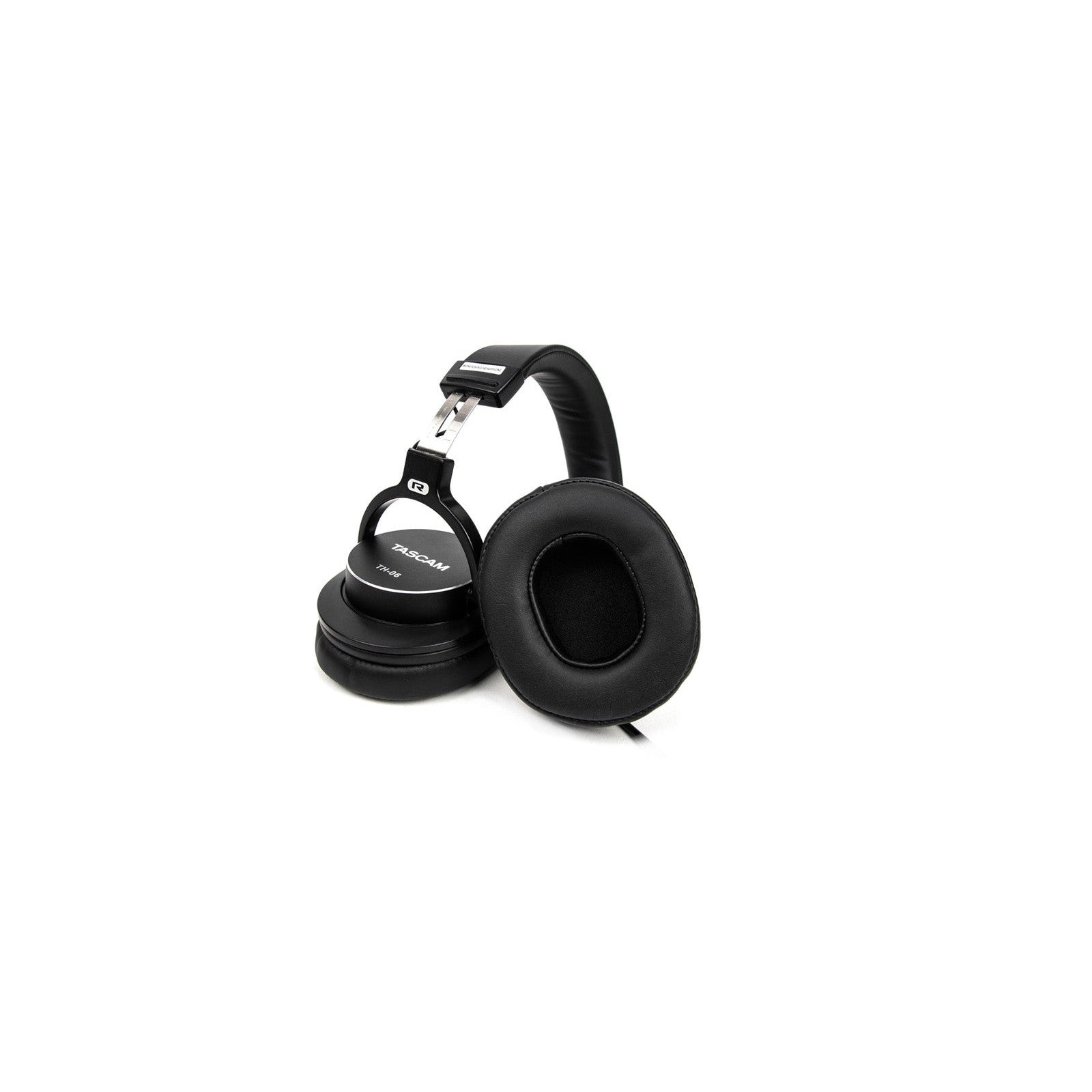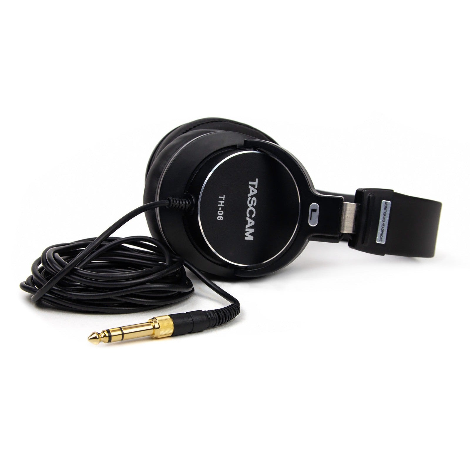 The Choice for Big Bass The TH-06 employs a custom 45mm magnet driver and features Bass XL, a special voicing that delivers enhanced low-frequency response for superior dynamic range, while offering excellent clarity and minimal distortion. You get deep low bass that is balanced, never overpowering the rest of the audio field or sounding tubby or artificial. Work in Comfort Without Ear Fatigue TASCAM TH-06 headphones are lightweight and feature high-quality, circumaural, closed-back ear cups that provide listening isolation while minimizing headphone bleed. The ear cups rotate 180 degrees, and a special sewing process around the edge tightly stitches them around a stainless steel frame for extra cushion. Combined with a strong, flexible, lightweight manganese headband, this ensures a comfortable fit. With their comfort, adjustability, distortion-free sound, and listening isolation, you can monitor with TH-06 headphones for extended periods without ear fatigue. High Quality Cables and Connections TH-06 TH-06 headphones are built to perform over the long haul, including internal connections that use OFC oxygen-free copper wire core. The 9.8ft (3m) cable gives you plenty of room to move around, and it comes with both a gold-plated, 1/8-inch (3.5mm) connector and a 1/4-inch (6.3mm) adapter. Features at a glance Ultra wide dynamic range with enhanced Bass XL response Smooth natural bass for DJ's, producers, remixers, or anyone wanting expanded low end Closed back, circumaural design with 180° cup rotation 45 mm magnet driver Dynamic transducer Strong, flexible, lightweight manganese headband A special sewing process around the edge tightly stitches ear cups around a stainless steel frame for extra cushion Cable length: About 9.8ft (3m) when fully extended Gold plated 1/8-inch (3.5mm) connector Screw-on 1/4-inch (6.3mm) adapter Frequency response: 10 – 26k Hz Max power: 1850mW Rating Power: 320mW Impedance: 45Ω Sensitivity: 94 dB (+/-3 dB)
