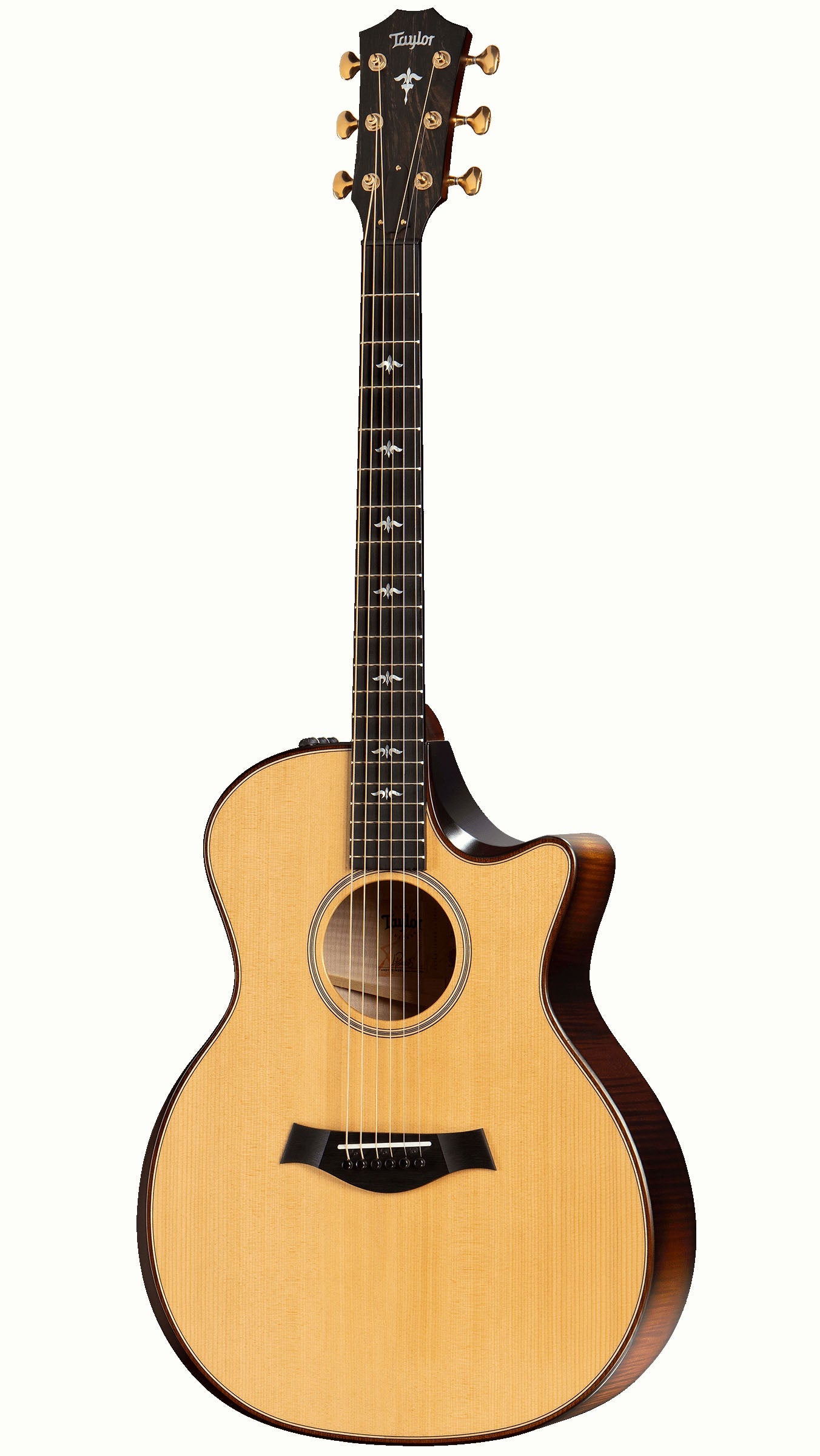 Taylor design guru Andy Powers conceived our Builder’s Edition collection to deliver a next-level, player-centric experience in both feel and sound. Each model in this family is the equivalent of his director’s cut version of its standard model counterpart, boasting premium woodworking details that refine the playing comfort on both the body and neck. The Builder’s Edition 614ce features our popular Grand Auditorium body, a torrefied Sitka spruce top, back and sides of figured Big Leaf maple, and our patented V-Class bracing. That combination yields an ultra-responsive, player-reflective sound, elevating maple’s natural transparency in a way that can sound warm, bright or whatever a player’s hands decide. The V-Class architecture improves the volume, sustain and projection, and creates more harmonic agreement between notes by putting the top more in tune with the strings. Our proprietary roasting process for the Sitka spruce top lowers the damping effect and helps deliver a more played-in tone. Ergonomic body details (exclusive to Builder’s Edition) include a beveled armrest with beveled body edge treatment; a double-carved cutaway that allows fluid access to the higher frets without the need to change one’s hand position; and our new Silent Satin finish, which reduces contact noise for a cleaner overall sound. Gold Gotoh 510 tuners (featuring a 21:1 gear ratio) complete the suite of tactile delights. Striking aesthetic details include a new Wild Honey Burst on the back, sides and neck (an optional burst-top version is also available), our mother-of-pearl Sceptor fretboard/peghead inlay, and inset maple/black body purfling with matching rosette. The guitar comes equipped with our ES2 electronics and ships in a deluxe hardshell case.