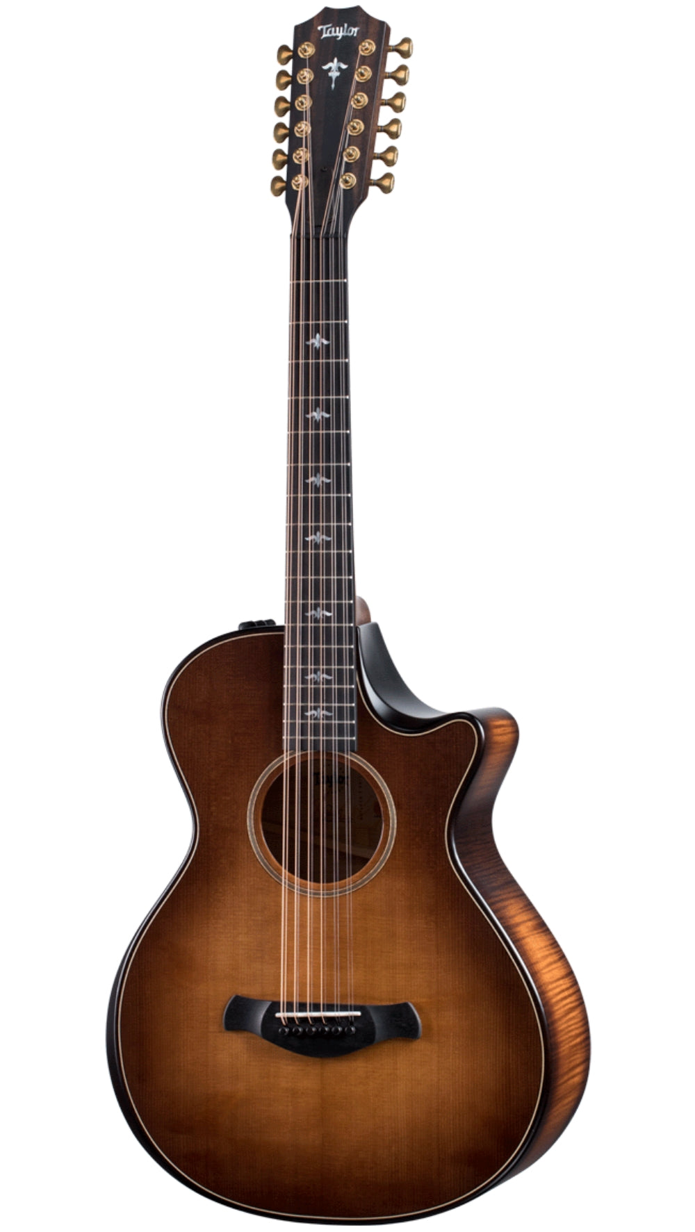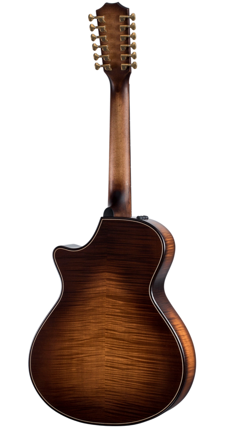 Joining the growing family of master-crafted Builder’s Edition guitars, this 652ce is a 12-string for a new generation of acoustic guitarist. Built with figured Big Leaf maple for the back and sides with a torrefied Sitka spruce top, this model’s shimmering, octave-rich tone benefits from maple’s clarity and focus, offering an expressive, easily-recorded sound that will inspire players to expand their sonic palette. V-Class bracing delivers a unique boost in the 12-string configuration, adding texture and tonal bloom as notes resonate with increased sustain and power, while the guitar takes on additional punch resulting from the reversed string orientation. Placing the fundamental string at the top of each pair adds warmth and body, and our new double-mounted string anchoring system provides cleaner intonation with each string crossing the saddle at the same point. Our special roasting process draws a more aged-in, sweetened response from the torrefied spruce top, and the 12-fret setup brings the bridge closer to the center of the lower bout for stronger midrange presence and a slinkier, more relaxed feel for your fretting hand. This 652ce is appointed to deliver a playing experience that matches its robust tone, with chamfered body and fretboard edges, a smooth Curve Wing bridge, and beveled armrest and cutaway providing a truly fluid, intimate connection between player and instrument. Like many of its Builder’s Edition counterparts, this 12-string is finished in an edgburst-hued Silent Satin sheen that reduces incidental noise for clean recordings, along with Scepter inlays in shell and mother-of-pearl for an artful, eye-catching visual character. It ships with ES2 electronics in a deluxe Taylor hardshell case.