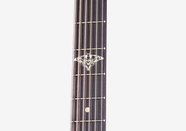The Moth inlay on the third fret matches the design from the show, reflecting the story’s themes of rebirth and beauty amid catastrophe.