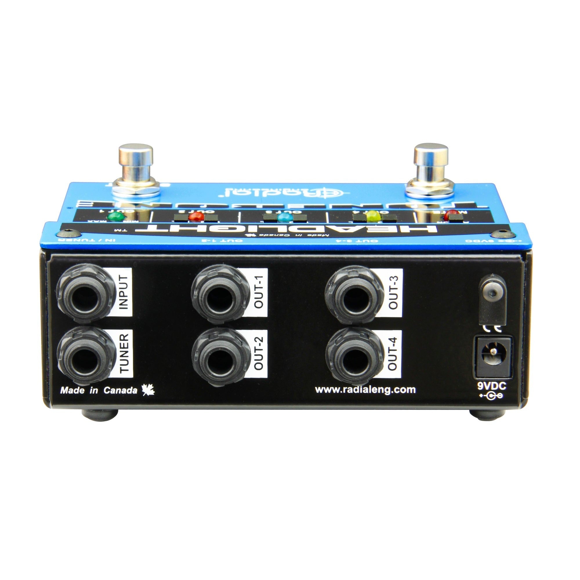 Four Output Guitar Amp Selector The Headlight™ is a unity gain guitar amp selector designed to easily integrate onto a pedalboard and provide the ability to switch between as many as four amplifiers with a single footswitch. Four output amp switcher with sequential switching Isolated outputs to eliminate hum and buzz Compact footprint easily fits on a pedalboard Mute footswitch for silent on-stage tuning