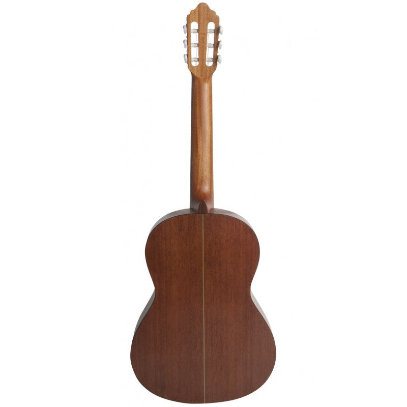 Select sitka spruce top and bound nato back and sides coupled with a mahogany neck. A GraphTech Nu-bone XB bridge saddle and USA strings delivers rich tone with a lively presence. Traditional gold machine heads (with pearloid-button tuners), and a beautiful ABS center back strip round out the traditional look of the Valencia Series 400 range. The transparent, satin finish and tasteful appointments highlight the Series 400 understated good looks. • Size: 4/4 • Top: Sitka Spruce • Back & Sides: Nato • Top Binding:ABS - 5 Ply Black/White • Side Binding:ABS - Black • Back Center Strip:ABS - 5 Ply Black/White • Neck:Mahogany • Neck Binding:ABS - Black • Neck Side Dots:Yes • Fret Wire:19 Frets; Nickel • Bridge Saddle:NuBone XB; Canada • Rosette Decoration:Historic Valencia • Machine Heads:Traditional - Gold Plated with Pearloid Buttons • Strings:USA • Scale:4/4 = 650mm (25 5/8”) • Nut Width:4/4 = 52mm (2 1/16”)