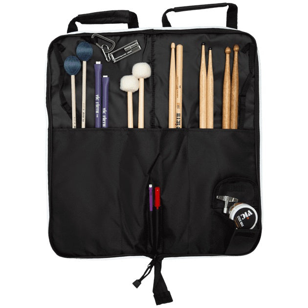 The Classic bag features durable 600D nylon construction, heavy-duty zippers and a removable shoulder strap. The interior has a new floor tom attachment system that utilizes adjustable loops to hook on to any floor tom diameter. The new carabiner hook provides a great place to put brushes, keys or anything else a drummer wants.
