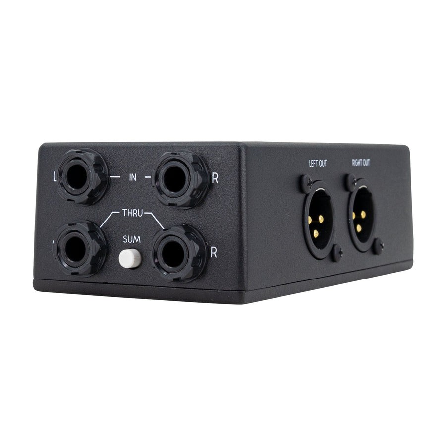- Sum Switch: When Disengaged (Out), the Left Input Connects to the Left Thru. The Right Input Connects to the Right Thru Allowing the Use of Stereo Amplifiers. | When Engaged (In), Sum Connects the Left and Right Thru Jacks Together to Combine the Signals for Running Into a Single Amplifier (Use Either Thru Jack).