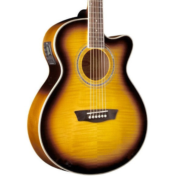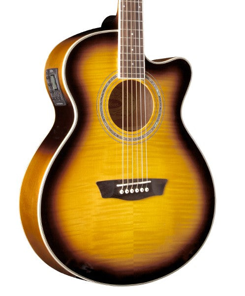 Washburn Designed The Festival Series To Address The Needs Of The Performing Musician And It Has Succeeded For Over 25 Years. The Festival Series Was The Standard Acoustic/Electric Guitar Seen On Mtv’s “Unplugged” Series And Has Since Become One Of The Best Selling And Most Copied Guitars On The Market. A Comfortable Body Teamed Up With Quality Barcus-Berry Electronics, Hardware, And Fine Woods Allows The Pristine, Crystalline Highs To Blend Perfectly With A Full, Well Rounded Low End.