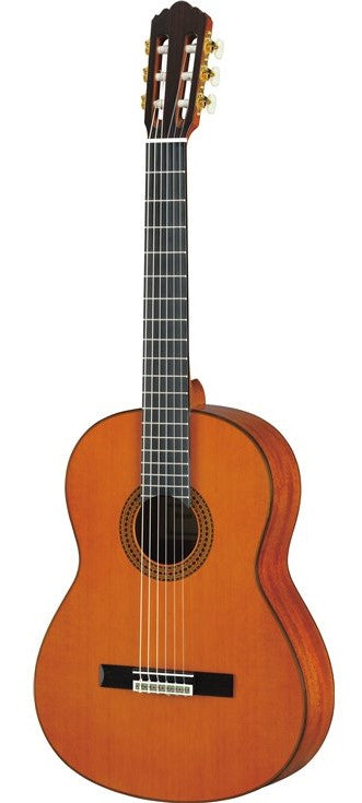 Characterized by bright sound and superb response crafted with a solid front plate and solid mahogany wood plates in back and sides. Widely popular model with perfection not only for classic music but also for enjoying popular sounds. GC12C features solid American Cedar on the top board.