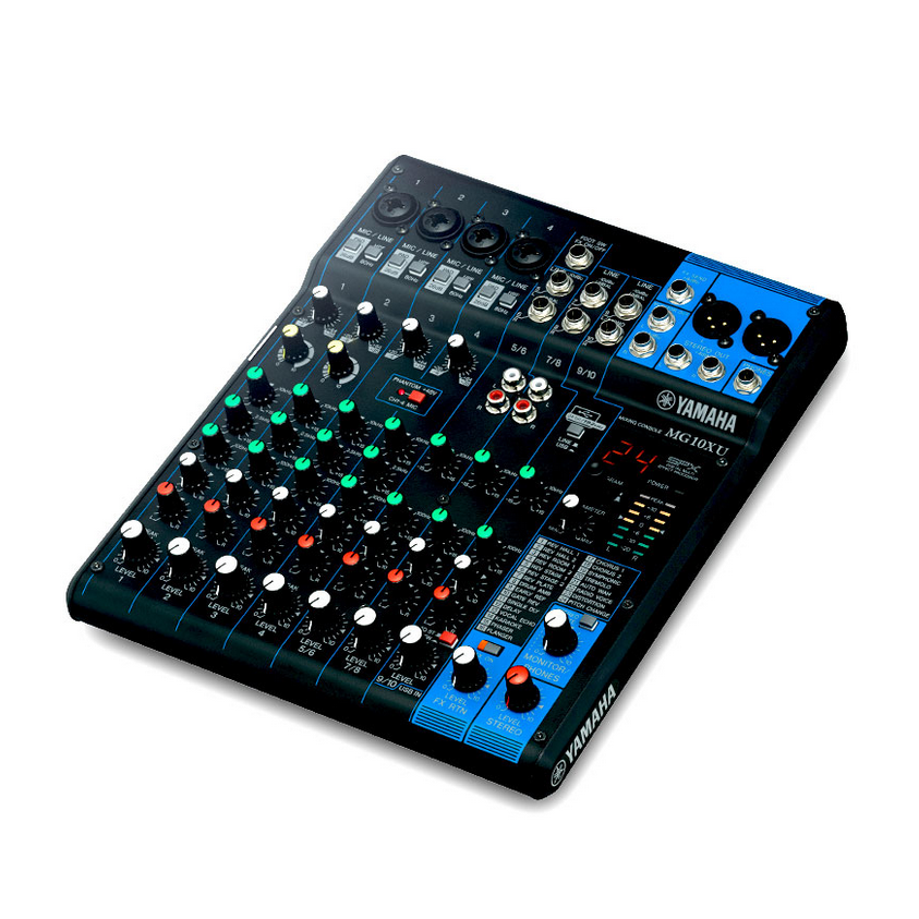 10-Channel Mixing Console: Max. 4 Mic / 10 Line Inputs (4 mono + 3 stereo) / 1 Stereo Bus / 1 AUX (incl. FX)
