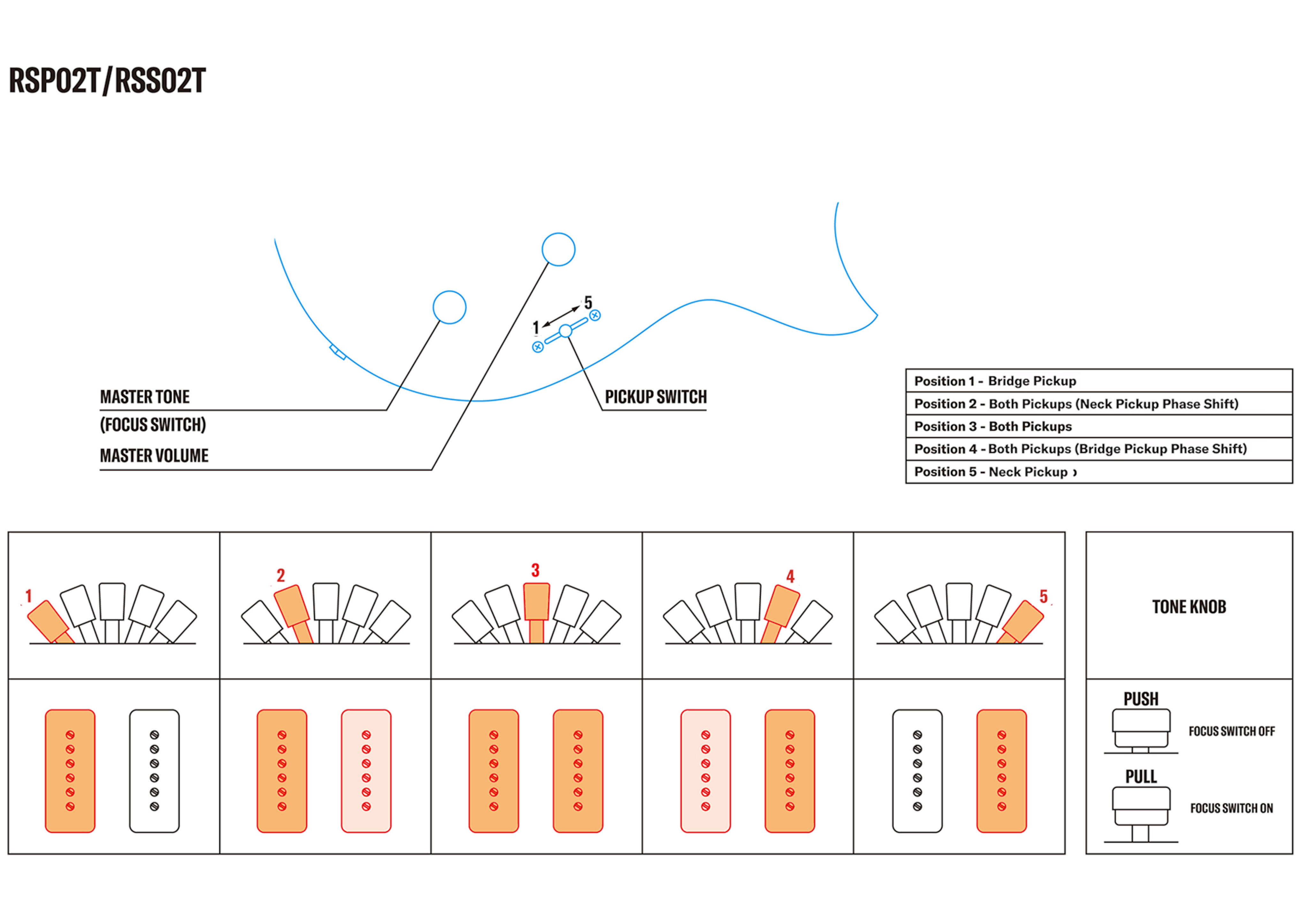 - Controls: Master Volume | Master Tone (Push-Pull "Focus Switch")
