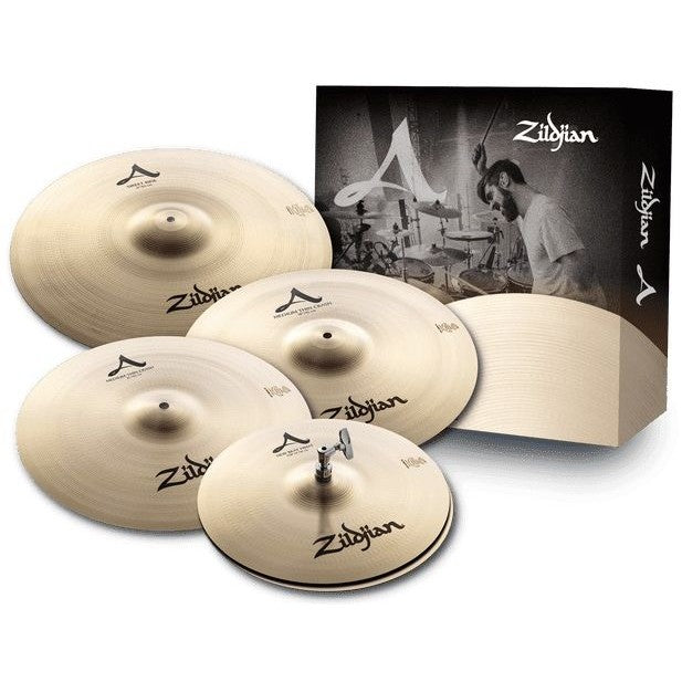 The A Zildjian Pack features the cymbals that have shaped musical history. One of the most popular and versatile cymbals used by musicians for generations, the A Zildjian line is known for its bright, focused overtones and ability to produce as much volume as the music demands. This pack includes 14” New Beat HiHats, a 16” A Medium Thin Crash, a 21” A Sweet Ride, and a value-added 18” A Medium Thin Crash. This pre-matched set-up features: 21" Sweet Ride 16" Medium Thin Crash 14" New Beat HiHats 18" Medium Thin Crash - Value Added