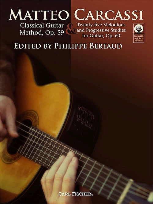 Professional guitarist and teacher Philippe Bertaud has meticulously edited and revamped the classic Carcassi guitar method for use by today's guitar student. Bertaud's sensitive reworkings of the method retains the original intent, but also adds many modern conventions in the instruction of the classical guitar. As an added bonus, this book includes MP3's containing recordings of all 25 studies of the Carcassi op. 60 beautifully performed by Bertaud. This combined edition of Matteo Carcassi's Classical Guitar Method, op. 59 and Twenty-five Melodious and Progressive Studies for the Guitar, op. 60, along with the included digital download make this new edition of the Caracassi method an indispensable addition to the library of any student or teacher of classical guitar.