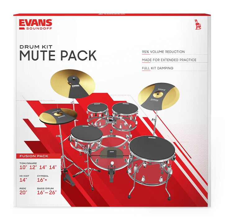 The Evans SoundOff Fusion Box Set significantly reduces volume while you practice on your traditional drum set. SoundOff Mutes provide excellent stick response and are durable enough for the heaviest hitters. SoundOff Mutes are available for purchase in pre-configured packs or as individual mutes.