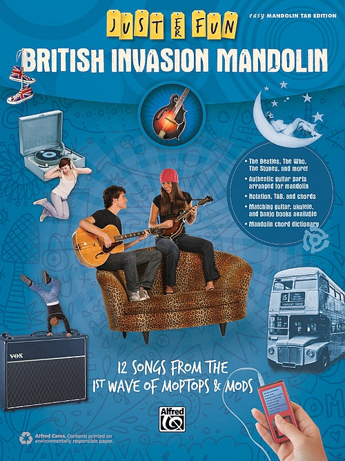 Just for Fun: British Invasion Mandolin is designed for your total enjoyment. Each featured song is arranged for banjo based on the original guitar parts, simplified just enough to keep it fun and easy, yet musically very satisfying. Standard notation, TAB, chords, lyrics, and a chord dictionary are included. Plus, guitar, ukulele, and banjo books with matching arrangements are available---just for fun! Titles: 19th Nervous Breakdown (The Rolling Stones) * As Tears Go By (Marianne Faithfull) * Dedicated Follower of Fashion (The Kinks) * I Saw Her Standing There (The Beatles) * The Kids Are Alright (The Who) * Please Please Me (The Beatles) * (I Can't Get No) Satisfaction (The Rolling Stones) * Shapes of Things (The Yardbirds) * She's Not There (The Zombies) * Tell Her No (The Zombies) * When You Walk in the Room (The Searchers) * You've Got Your Troubles (The Fortunes).