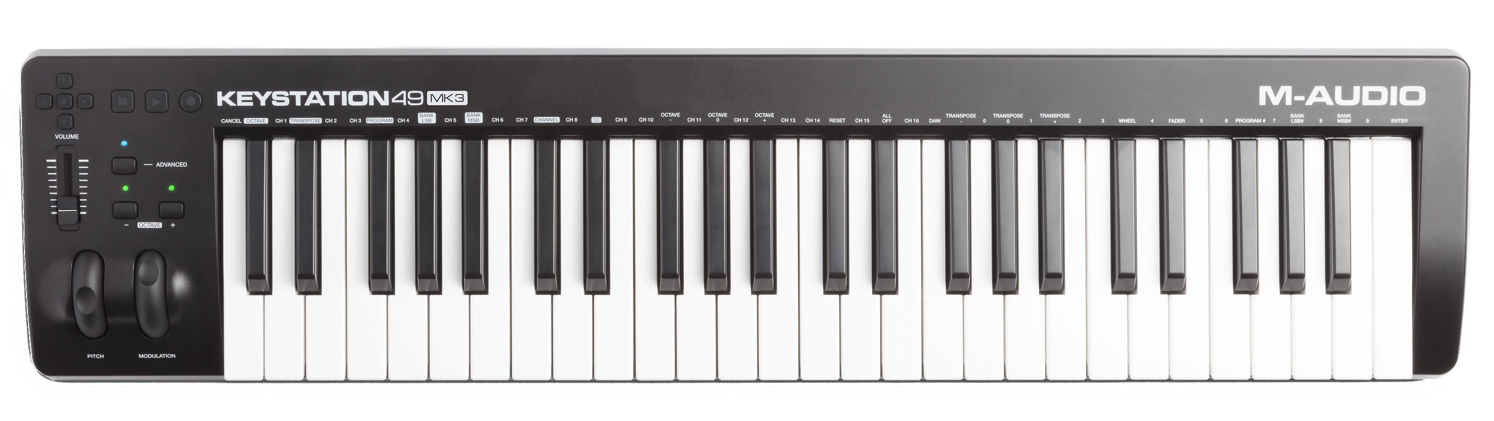 Start creating and performing music with your mac or PC with the world’s best-selling keyboard controllers: The Keystation Series from M-Audio. Whether you’re a seasoned pro looking for just the right controls or are looking to get started with the right USB MIDI controller, the Keystation 49 MK3 is a simple, powerful MIDI controller designed for sequencing music and playing virtual instruments on your Mac or PC. Keystation 49 MK3 features 49 natural feeling full-size velocity-sensitive keys and comprehensive controls that expand the range of playable notes, expressive capabilities, and enhance your recording workflow.